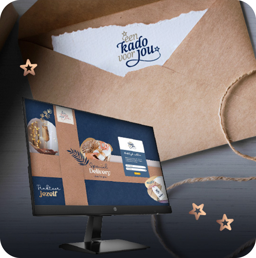Met EenKadovoorJou.nl bieden wij u een geheel verzorgt concept om uw medewerkers online een geschenk te laten kiezen. Wij bieden een assortiment aan dat jaarlijks wisselt, om bij het gebruik van meerdere jaren op rij, toch de medewerkers te blijven verrassen. Daarnaast nemen wij u graag al het werk uit handen. Benieuwd naar hoe EenKadovoorJou.nl werkt, klik hier.